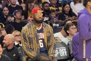 老父亲的骄傲!詹姆斯身穿布莱斯大学6号球衣到场观赛