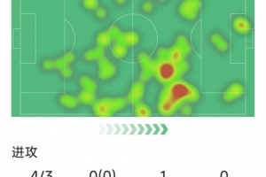 沃尔特马德本场数据:1关键传球+错失1次进球机会,评分6.2