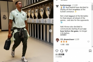 此外,皇马新帅阿隆索还将公布首发的时间改为赛前1小时,而不是之前的赛前2.5小时。