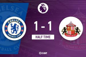 半场-切尔西暂1-1桑德兰 加纳乔收获蓝军首球内托送助攻