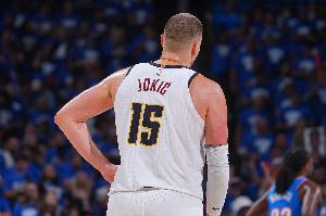 上半场,掘金球星约基奇策动进攻为主,打了16分钟1投1中,罚球2中2拿到4分7篮板11助攻3抢断,正负值+16。
