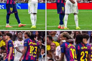 嘻嘻→呵呵赛中维尼修斯和亚马尔欢笑握手拥抱,赛后剑拔弩张
