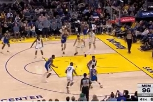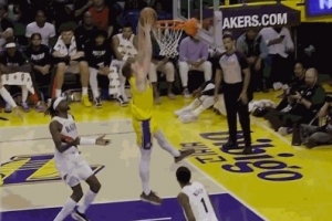 库里提前握拳庆祝!库明加顺下接球起飞 双手脆扣&网都没动!
