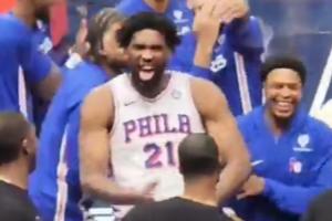 憋坏了!逆转后恩比德&替补席喷垃圾话+疑似不雅动作反击奇才球迷