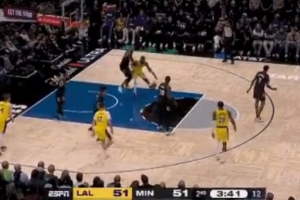 艾顿单打戈贝尔突破完全被罩住 无奈跳起传球直接失误出界