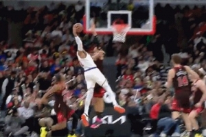 GIF-唐斯试图隔扣武切维奇扣飞失衡平拍在地,好在无碍