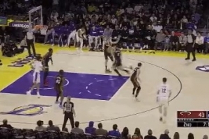 布朗尼上半场2中1得2分1板1助 生涯首次空接暴扣打嗨湖人替补席