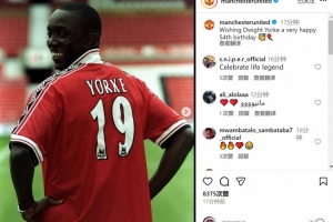 黑风双煞!曼联祝约克54岁生日快乐,效力期间出战152场66球32助