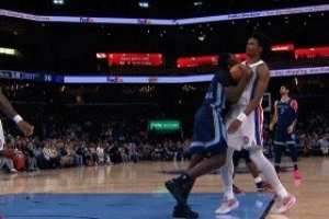 有点危险!布朗扑防后手撩阴小基昂特 裁判给普通犯规后者3罚全中
