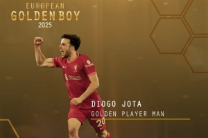 金童奖官方:利物浦前锋若塔被评为2025金球员奖