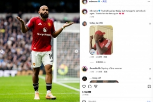 姆伯莫社媒晒摊手庆祝照:平局令人沮丧,但我们还是扳平了比分