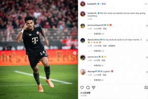 极限救球打入小角度神仙球!迪亚斯社媒晒庆祝照,J罗留言鼓励