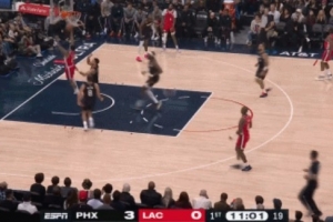 只见他腾空而起!比尔快攻机会飞速上空篮 结果以打铁告终