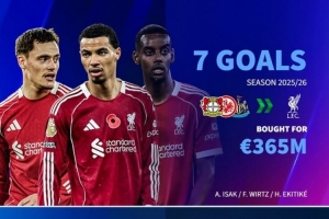 利物浦今夏近4亿砸维尔茨、埃基蒂克、伊萨克共7球,迪亚斯已11球