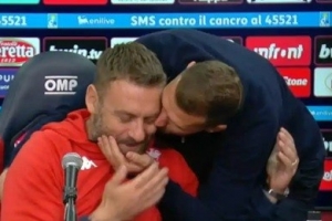罗马昔日队友重逢!哲科在上轮意甲赛后新闻发布会“强吻”德罗西