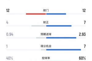 利物浦vs水晶宫半场数据:射门6-6、射正1-5、得分机会0-3