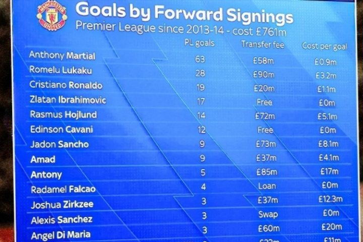 自13/14赛季以来,曼联花费7.61亿镑签了14名前锋,一共攻入191粒英超进球。而萨拉赫2017年加盟利物浦,他至今已经攻入了187粒英超进球。