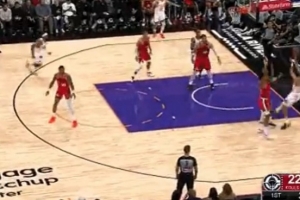 外线开火!博格丹晃开防守 横移加长三分洞穿篮心
