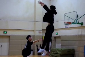 萌萌哒!文班亚马小时候打球的画面 小时候四肢就修长无比