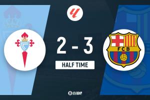 半场-巴萨3-2塞尔塔 莱万双响亚马尔破门拉什福德助攻+失单刀