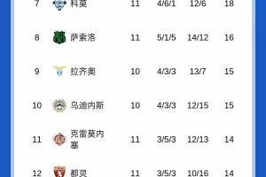 意甲积分榜:拿波里跌至第2 博洛尼亚反超尤文 国米罗马稍后出战