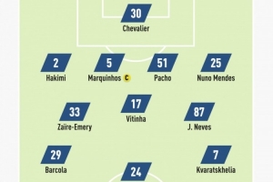 队报预测巴黎首发:巴尔科拉、马尤卢、K77三叉戟,登贝莱替补